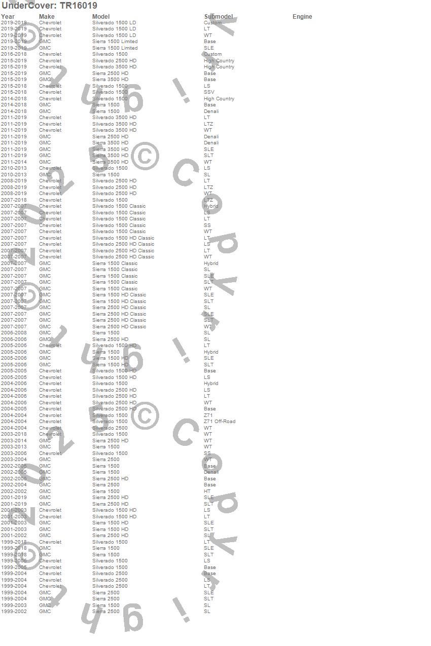 Below is an abbreviated list of applications for the UnderCover Triad Tonneau Cover.