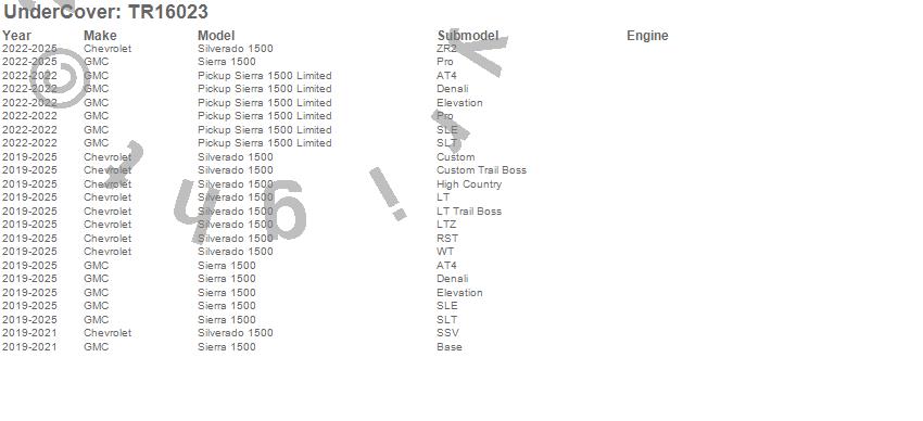 Below is an abbreviated list of applications for the UnderCover Triad Tonneau Cover.
