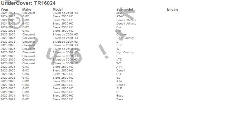 Below is an abbreviated list of applications for the UnderCover Triad Tonneau Cover.
