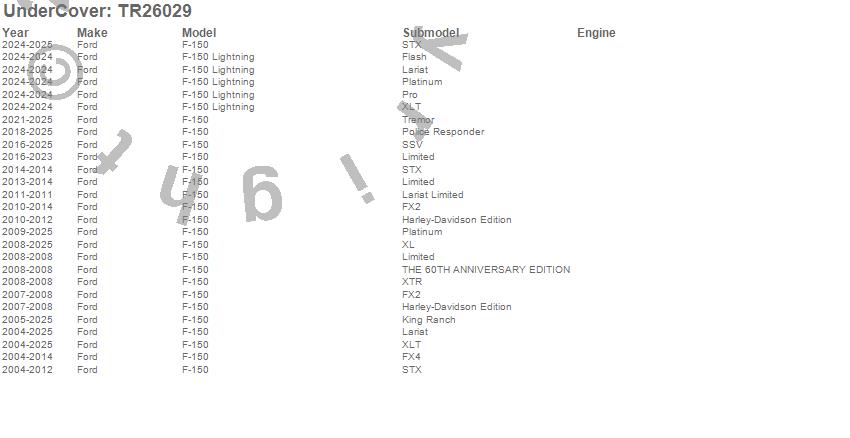Below is an abbreviated list of applications for the UnderCover Triad Tonneau Cover.