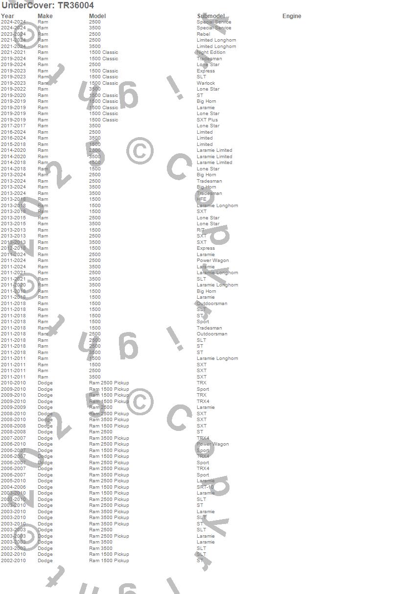 Below is an abbreviated list of applications for the UnderCover Triad Tonneau Cover.