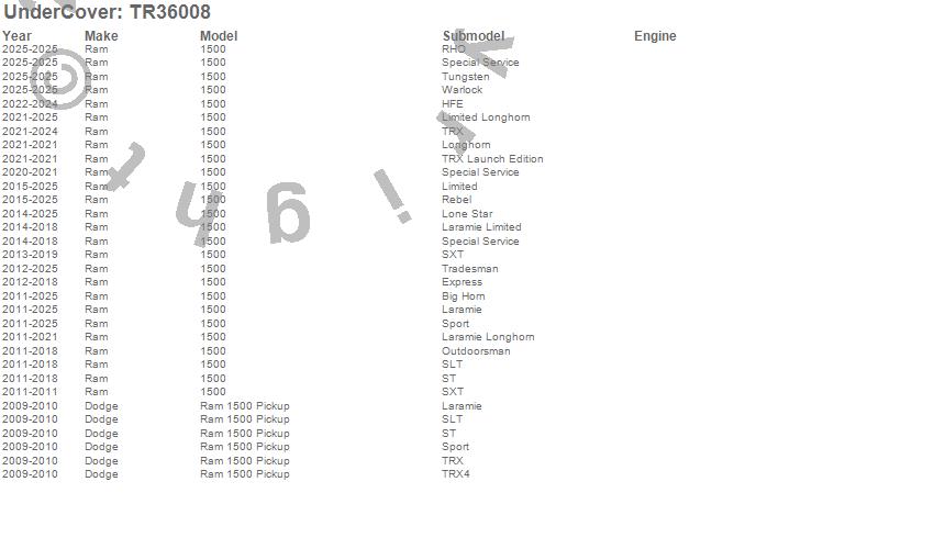 Below is an abbreviated list of applications for the UnderCover Triad Tonneau Cover.