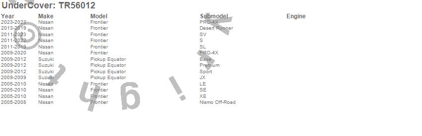 Below is an abbreviated list of applications for the UnderCover Triad Tonneau Cover.