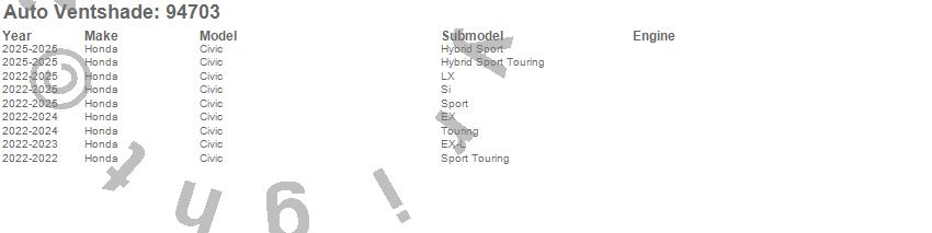 Below is an abbreviated list of applications for the Ventvisor Deflector 4 pc..