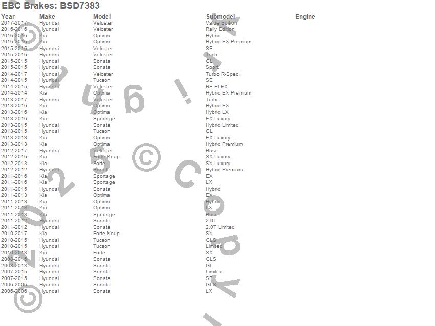 Below is an abbreviated list of applications for the BSD Series Sport Rotor Set w/Ultra Quiet V Slot Configuration.
