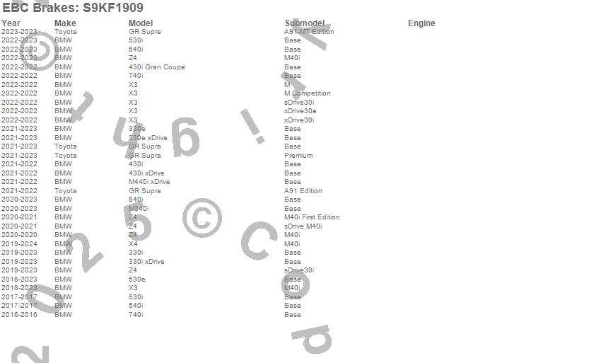 Below is an abbreviated list of applications for the S9 Kits Yellowstuff and USR Rotors.