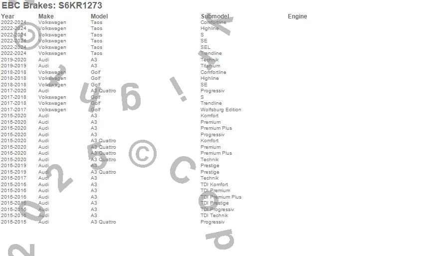 Below is an abbreviated list of applications for the S6 Kits Bluestuff and GD Rotors.