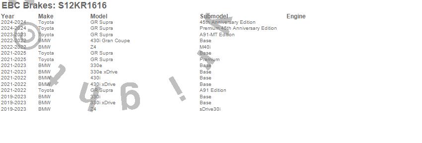 Below is an abbreviated list of applications for the S12 Kits Redstuff and RK Rotors.