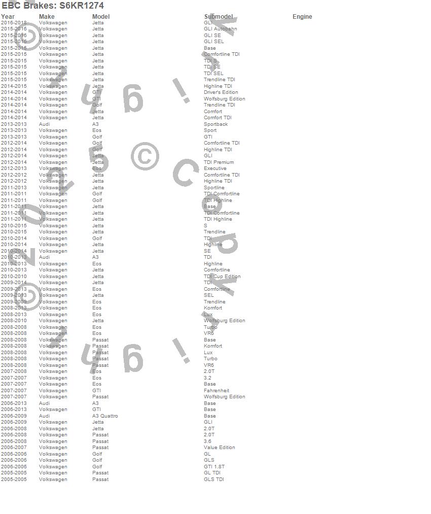Below is an abbreviated list of applications for the S6 Kits Bluestuff and GD Rotors.