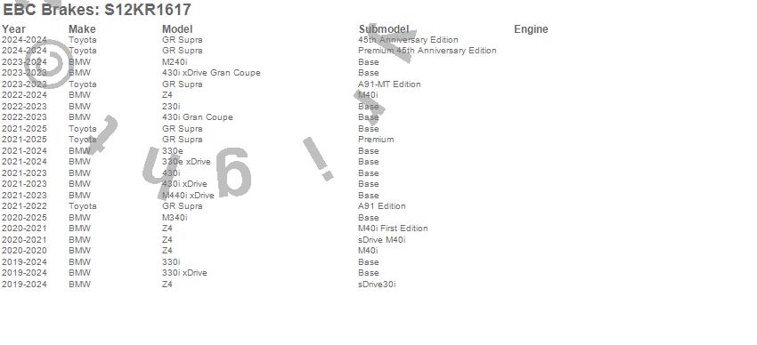 Below is an abbreviated list of applications for the S12 Kits Redstuff and RK Rotors.