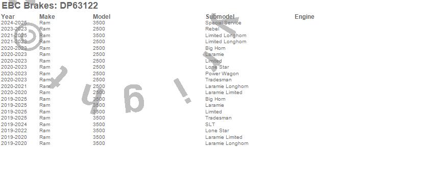 EBC Brakes DP63122 6000 Series Greenstuff Truck/SUV Brakes Disc Pads FMSI Pad No. D2223