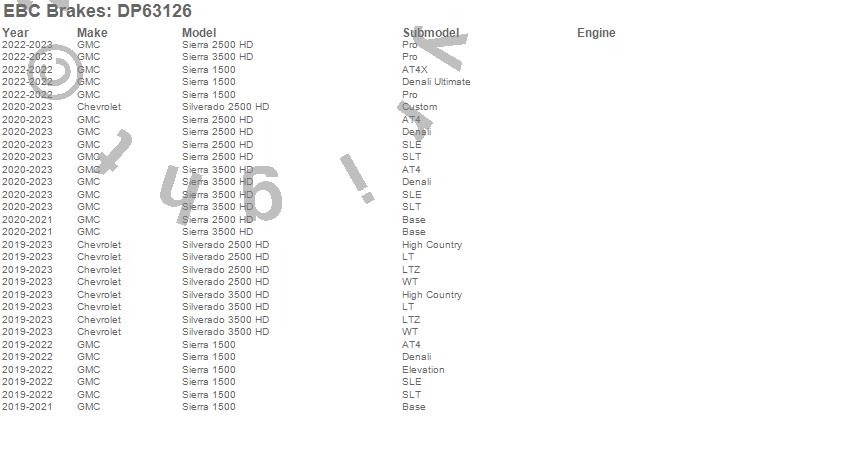 Below is an abbreviated list of applications for the 6000 Series Greenstuff Truck/SUV Brakes Disc Pads.