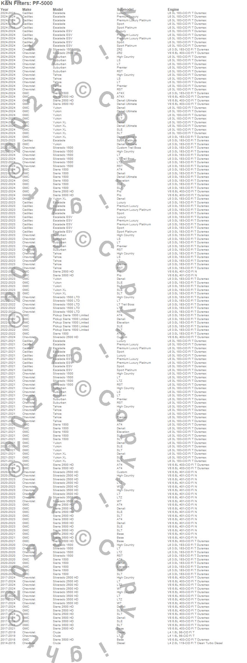 Cruze, Escalade, Escalade ESV, Pickup Sierra 1500 Limited, Sierra 1500, Sierra 2500 HD, Sierra 3500 HD, Silverado 1500, Silverado 1500 LTD, Silverado 2500 HD, Silverado 3500 HD, Suburban, Tahoe, Yukon, Yukon XL, Cadillac, Chevrolet, GMC, 2025, 2024