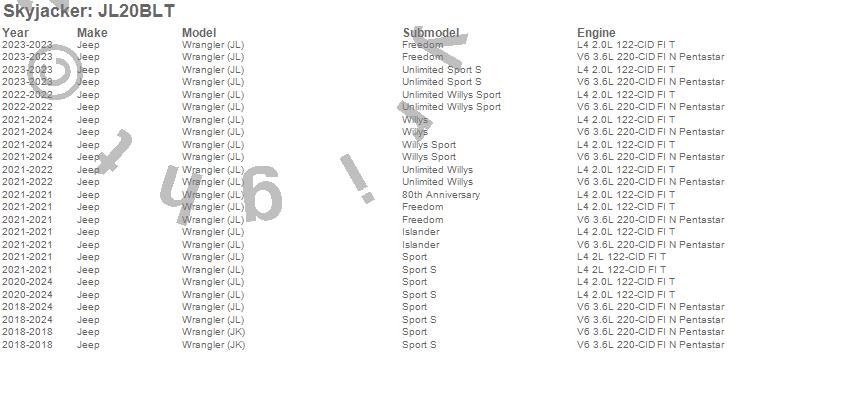 Skyjacker - Component Box P/N JL20BLT Features: