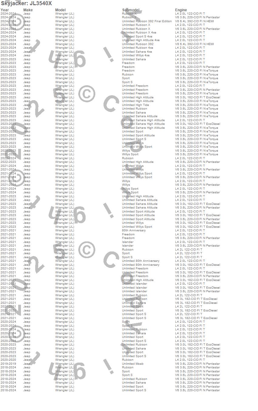 Skyjacker - Component Box P/N JL3540X Features: