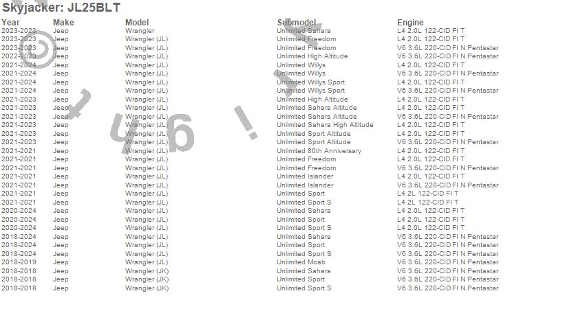 Skyjacker - Component Box P/N JL25BLT Features: