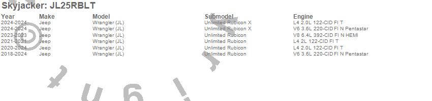 Skyjacker - Component Box P/N JL25RBLT Features: