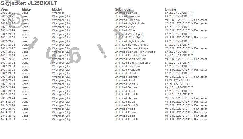 Wrangler, Wrangler (JK), Wrangler (JL), Jeep, 2024, 2023, 2022, 2021, 2020, 2019, 2018