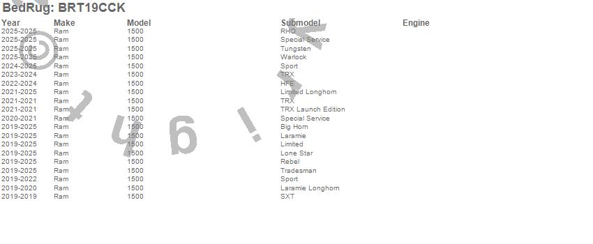 Below is an abbreviated list of applications for the BedRug Complete Truck Bed Liner.