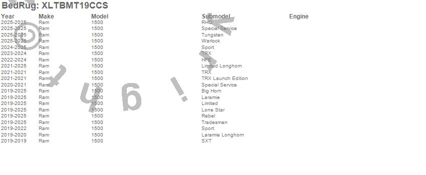 BedRug - XLT Mat P/N XLTBMT19CCS Features: