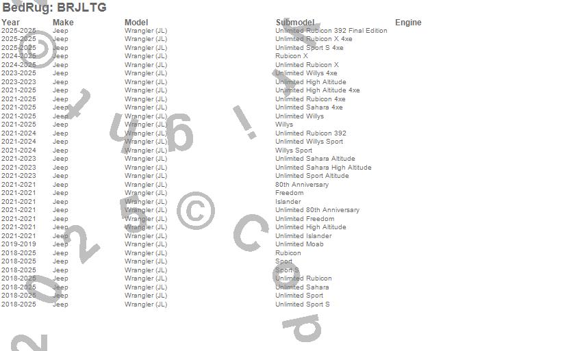 Below is an abbreviated list of applications for the BedRug Tailgate Mat.