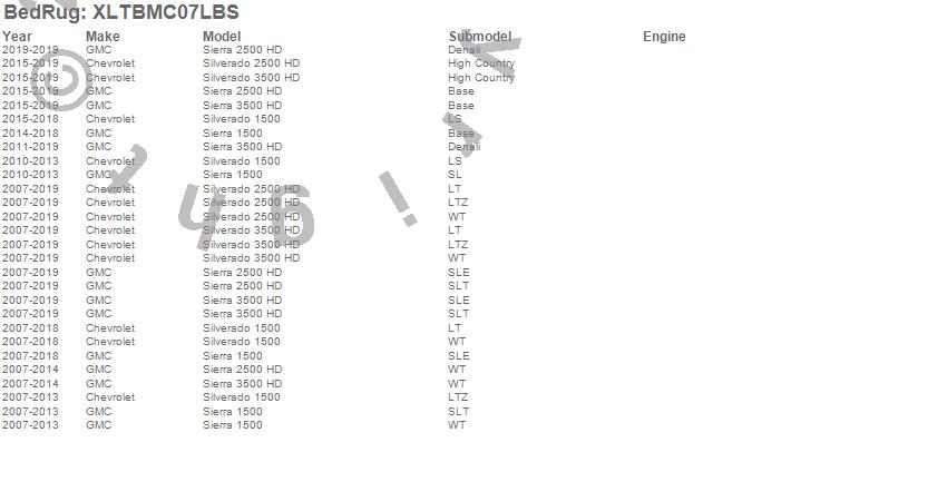 BedRug - XLT Mat P/N XLTBMC07LBS Features:
