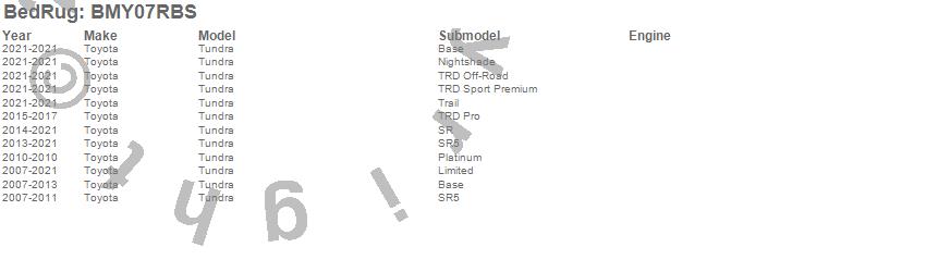 Below is an abbreviated list of applications for the BedRug Floor Truck Bed Mat.