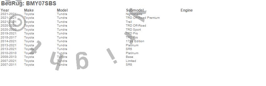 Below is an abbreviated list of applications for the BedRug Floor Truck Bed Mat.
