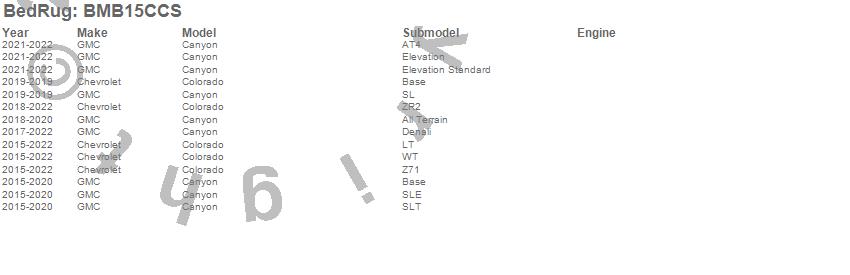 Below is an abbreviated list of applications for the BedRug Floor Truck Bed Mat.