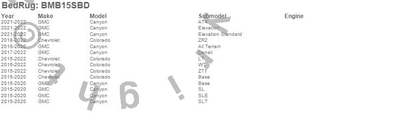 Below is an abbreviated list of applications for the BedRug Floor Truck Bed Mat.
