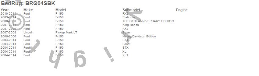 Below is an abbreviated list of applications for the BedRug Complete Truck Bed Liner.