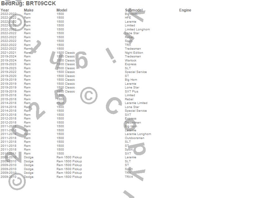 Below is an abbreviated list of applications for the BedRug Complete Truck Bed Liner.