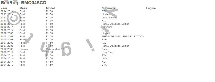 Below is an abbreviated list of applications for the BedRug Floor Truck Bed Mat.