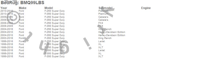 Below is an abbreviated list of applications for the BedRug Floor Truck Bed Mat.
