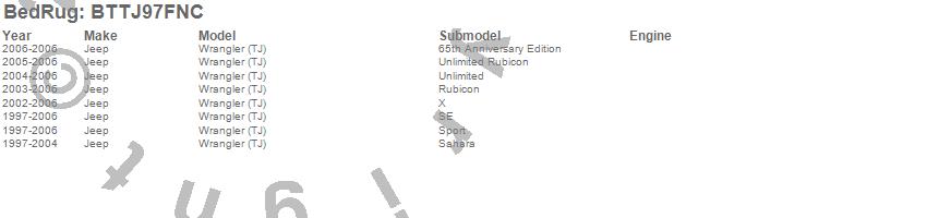 BedRug - BedTred Floor Kit P/N BTTJ97FNC Features: