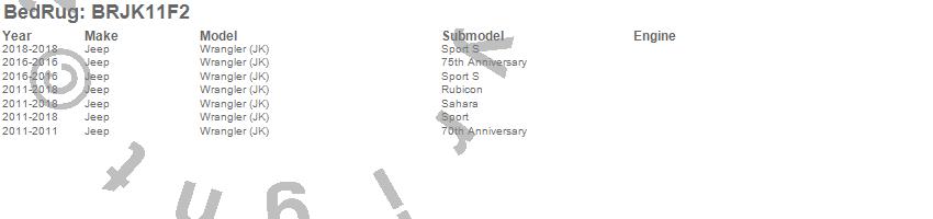 Below is an abbreviated list of applications for the BedRug Floor Kit.