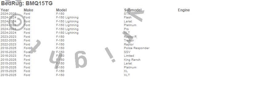 Below is an abbreviated list of applications for the BedRug Tailgate Mat.