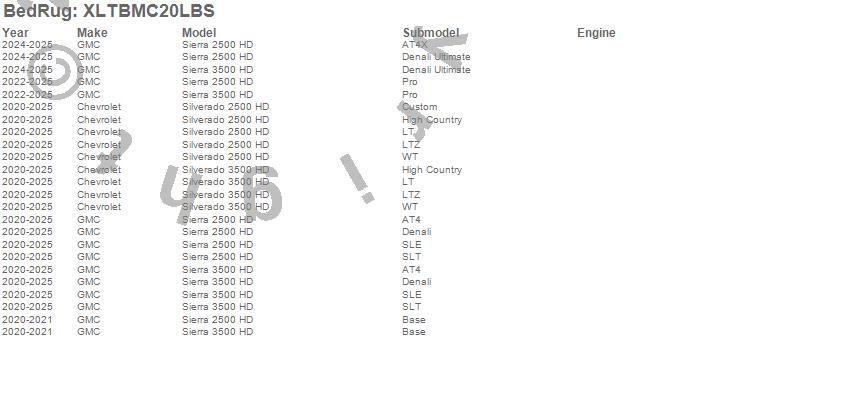 BedRug - XLT Mat P/N XLTBMC20LBS Features: