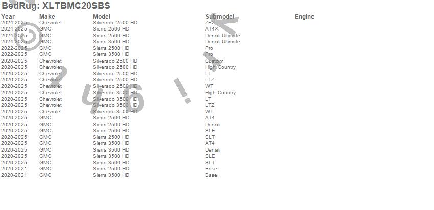 BedRug - XLT Mat P/N XLTBMC20SBS Features: