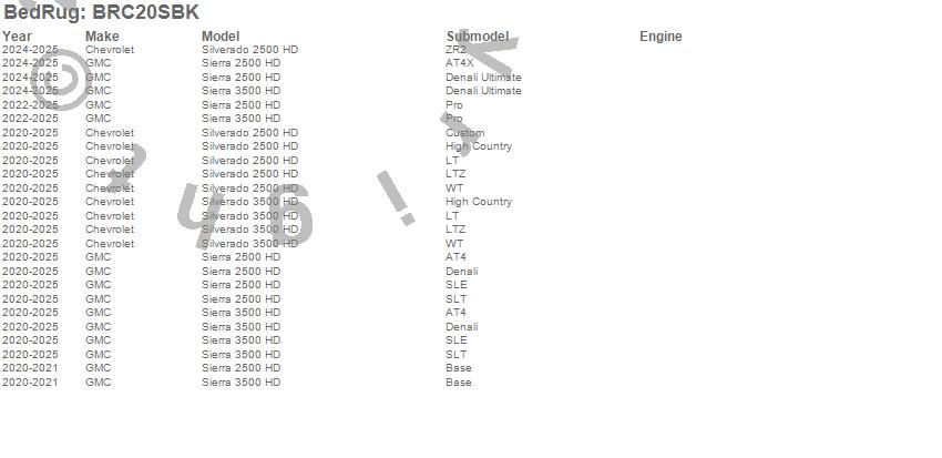 Below is an abbreviated list of applications for the BedRug Complete Truck Bed Liner.