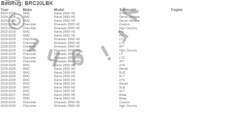 Below is an abbreviated list of applications for the BedRug Complete Truck Bed Liner.