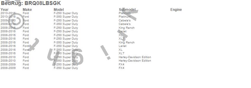 Below is an abbreviated list of applications for the BedRug Complete Truck Bed Liner.