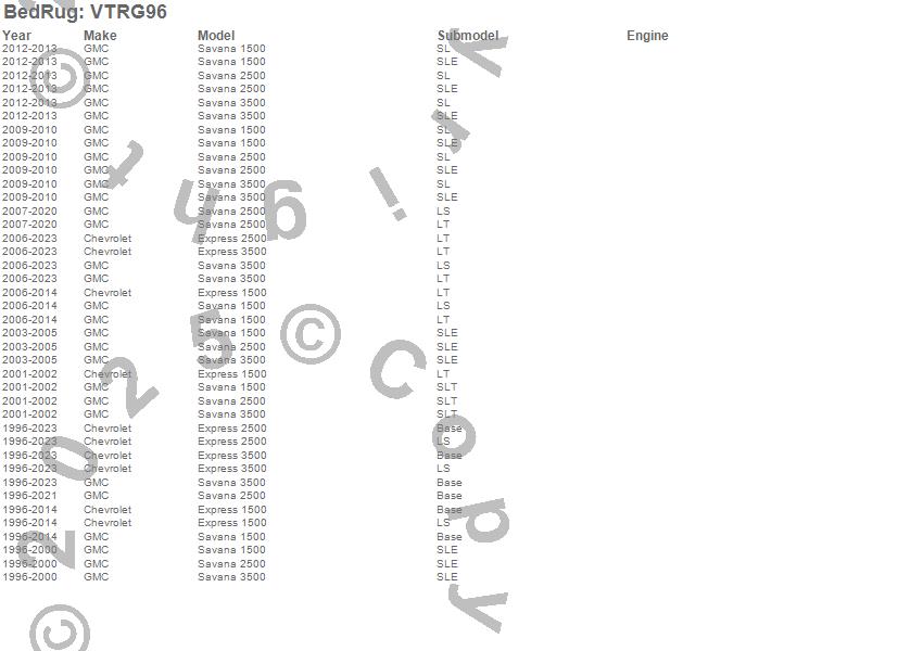 Below is an abbreviated list of applications for the VanTred Cargo Mat.