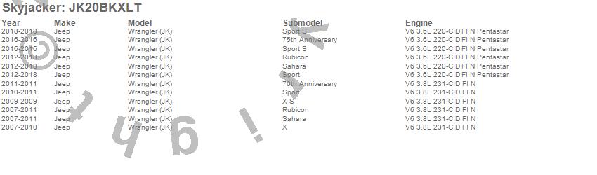 Wrangler (JK), Jeep, 2018, 2017, 2016, 2015, 2014, 2013, 2012, 2011, 2010, 2009, 2008, 2007