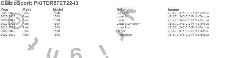 DiabloSport - Modified PCM And inTune i3 Programmer Kit P/N PKITDR57ET22-I3 Features: