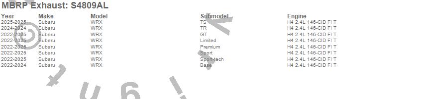 Below is an abbreviated list of applications for the Armor Lite Cat Back Performance Exhaust System.