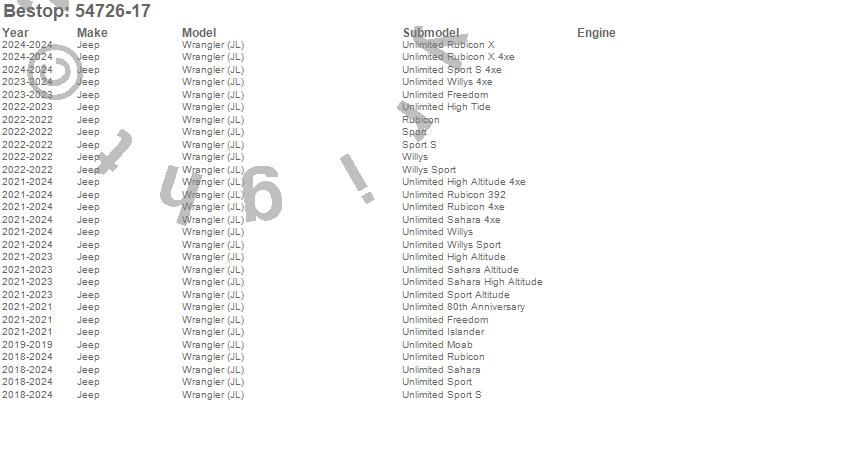 Below is an abbreviated list of applications for the Supertop Squareback Soft Top.