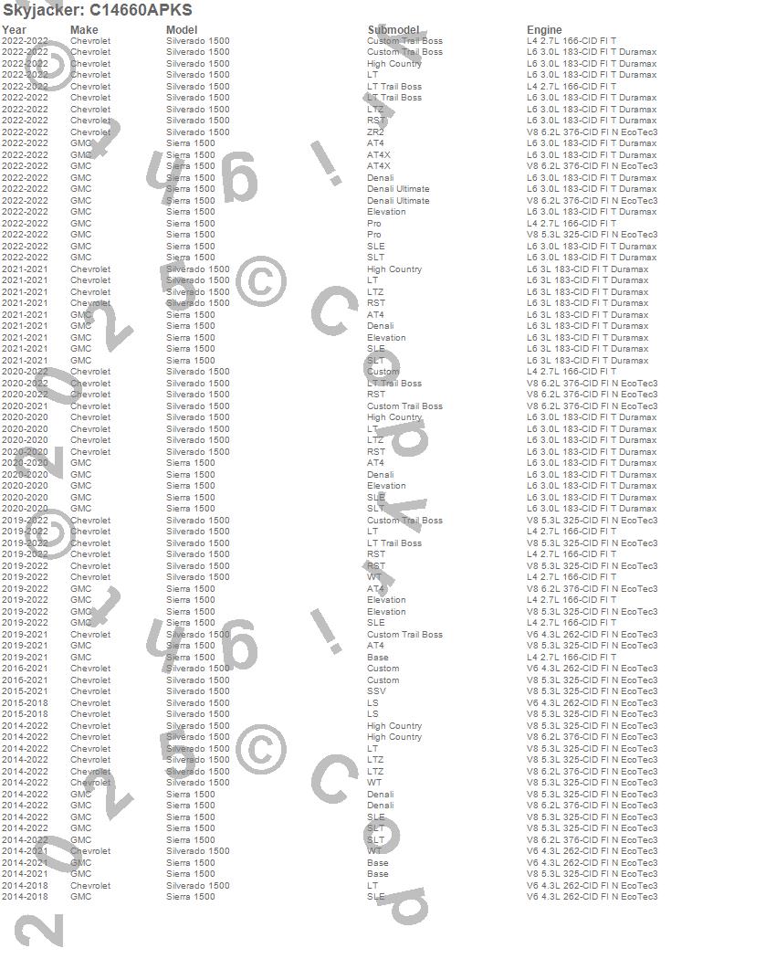Skyjacker - Suspension Lift Kit P/N C14660APKS Features: