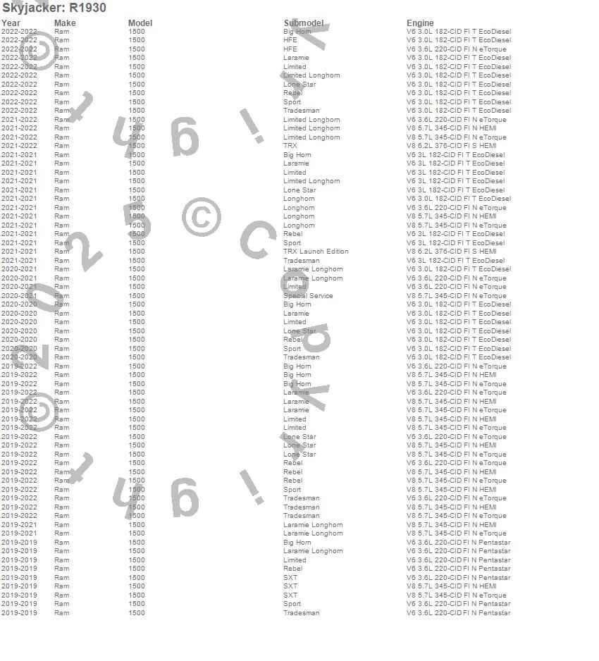 1500, Ram, 2022, 2021, 2020, 2019