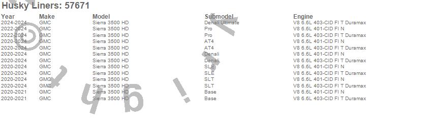 Husky Liners - Custom Molded Mud Guards P/N 57671 Features: